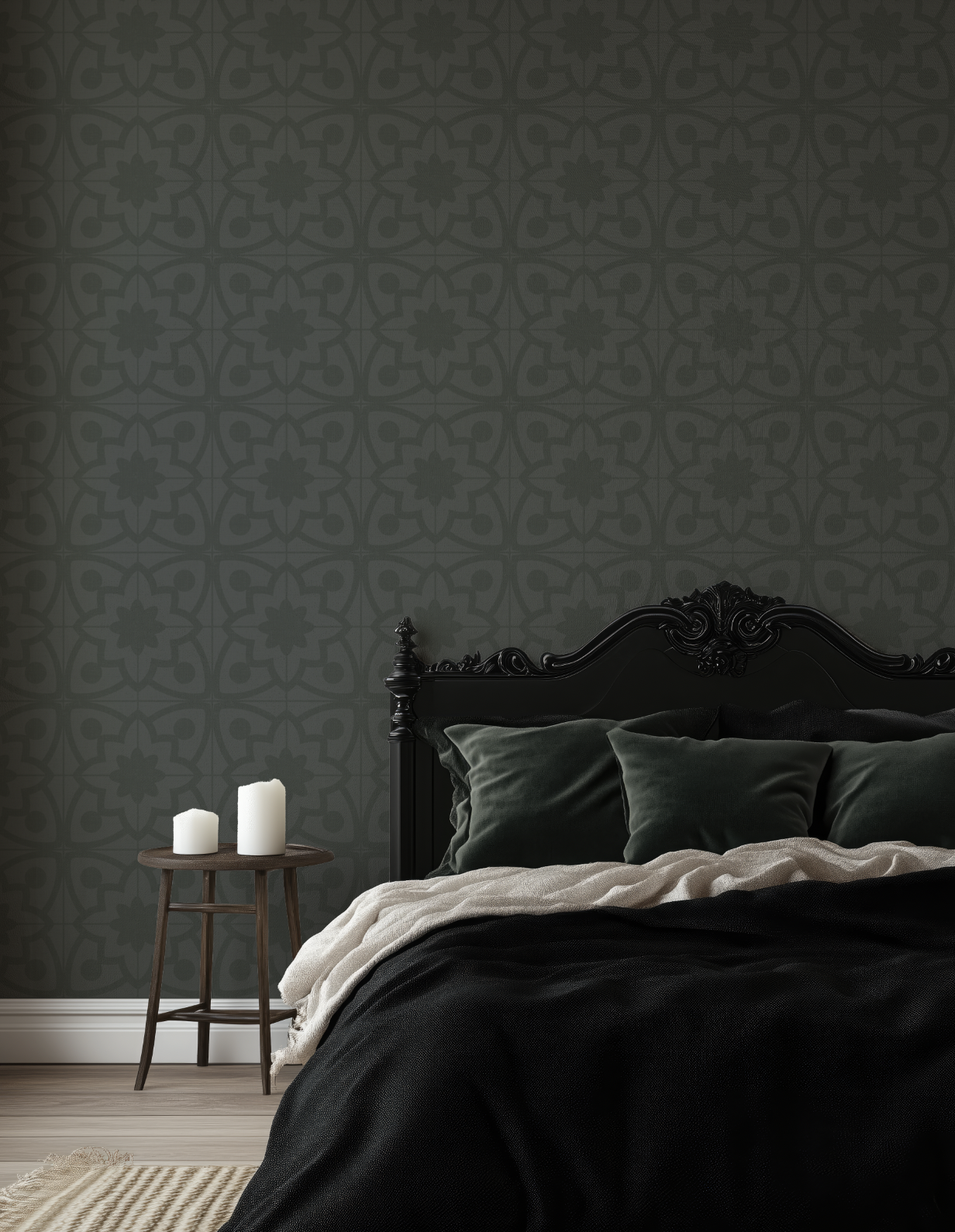 Asian Japandi inspired collection of garden florals and vines on a shadowy texture ground.