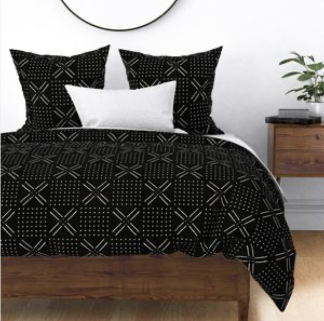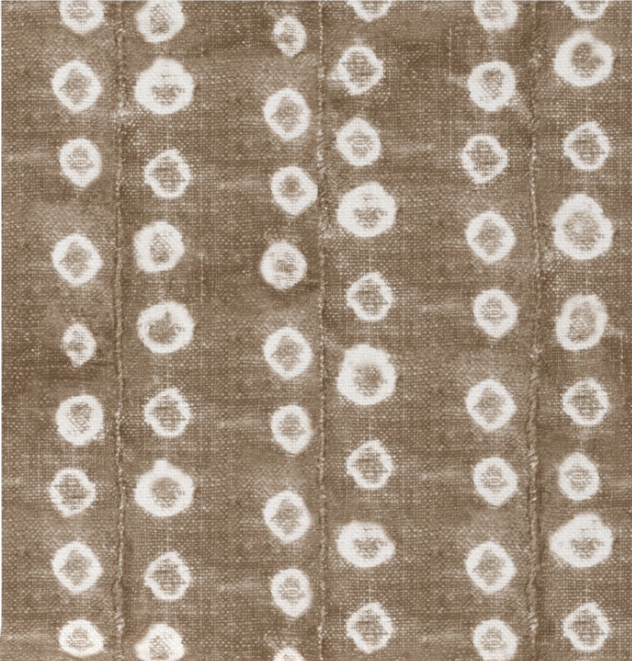 Mud Cloth from Mali informed this Shibori dot deign in a full range of updated colors
